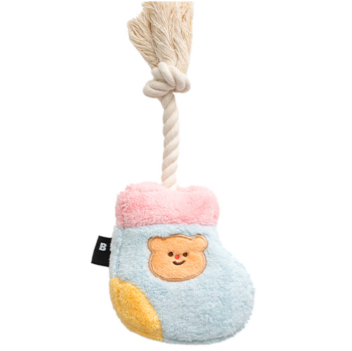 ふわふわ素材とロープ遊びの組み合わせで、引っ張り遊びやピーピー音になるが楽しめるおもちゃです!