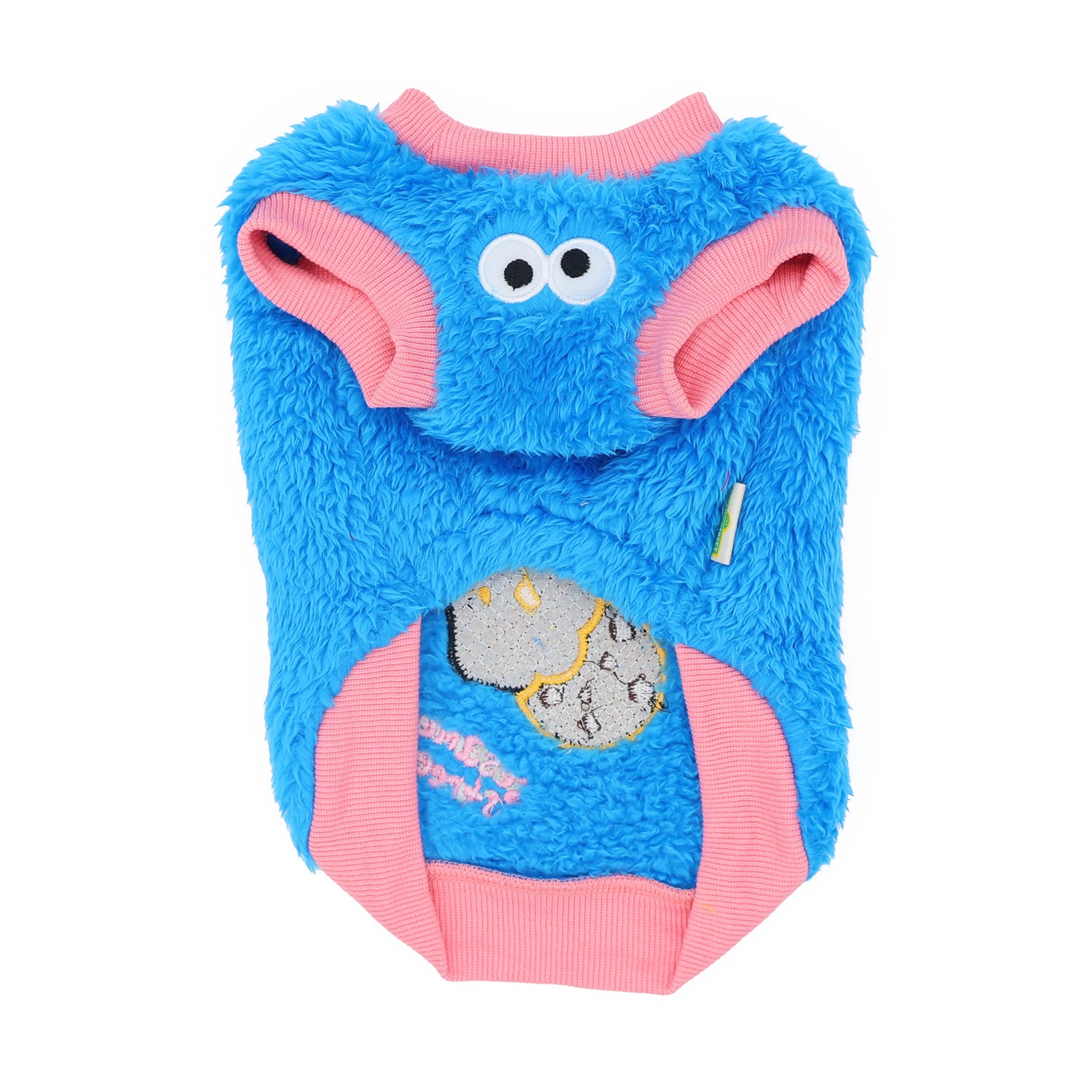 ●ボア生地でもこもこあったかい、背中と胸元にもかわいいお顔のデザイン♪